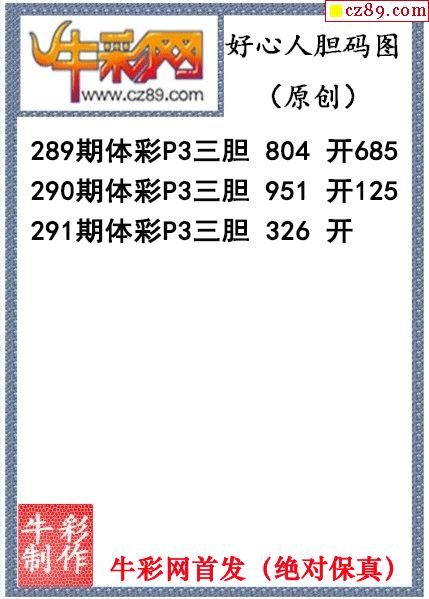 好心人送膽291期體彩p3圖謎(原創)