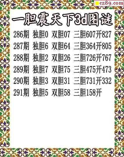 一膽震天下獨膽2025291期3d圖謎(原創)