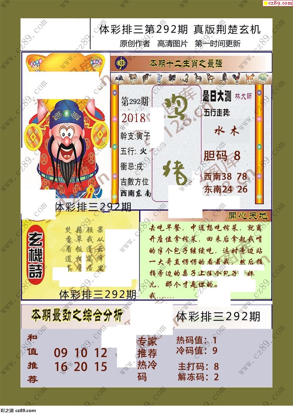 荊楚玄機292期體彩p3圖謎