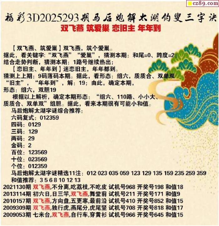 馬后炮解25年293期3d太湖釣叟之 雙飛燕