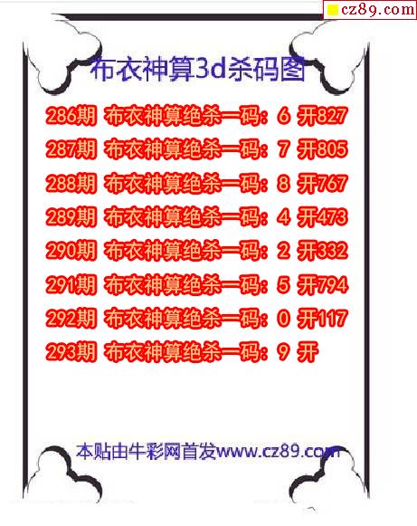 布衣神算殺碼2025293期3d圖謎(原創)