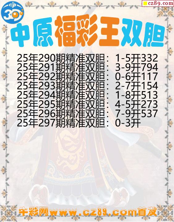 中原福彩王雙膽297期3d圖謎