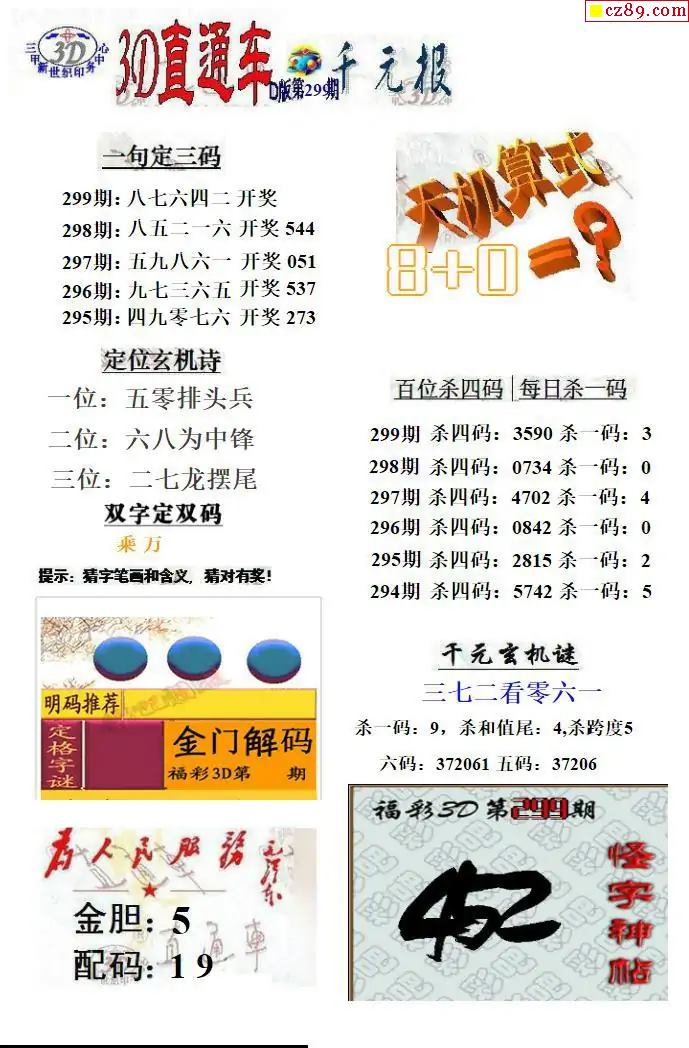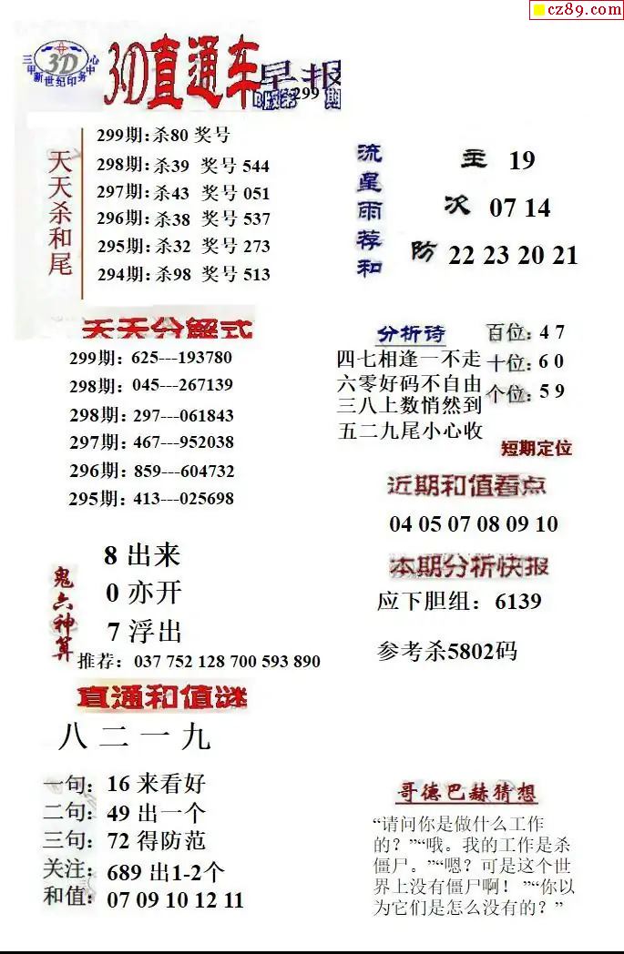 福彩3D2025299期直通車早報ABCD版