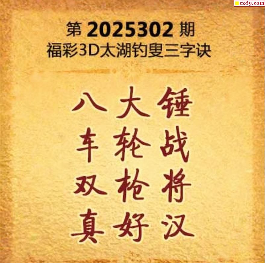25年302期3d字謎太湖釣叟三字訣《保真》