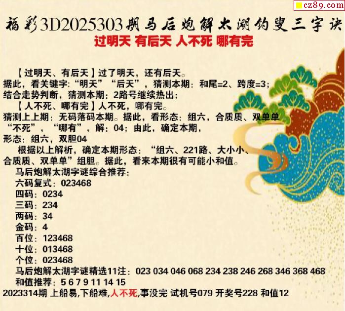馬后炮解25年303期3d太湖釣叟之 過明天