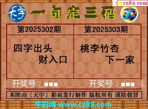2025303期天宇一句定三碼
