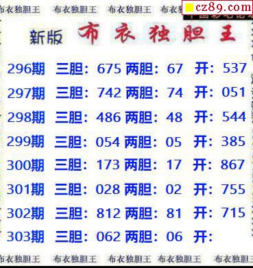 新版布衣獨膽王2025303期3d圖謎