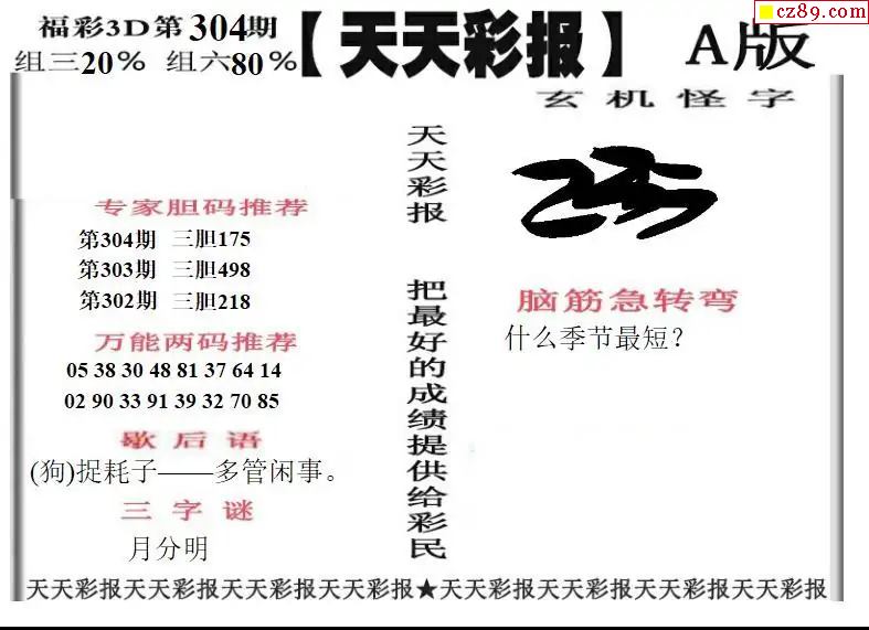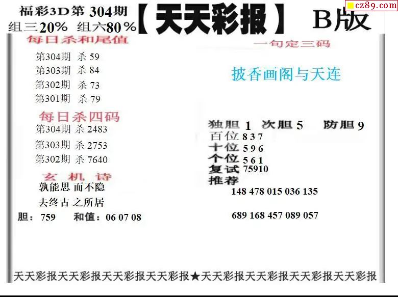 福彩3D2025304期天天彩報A版 天天彩報B版