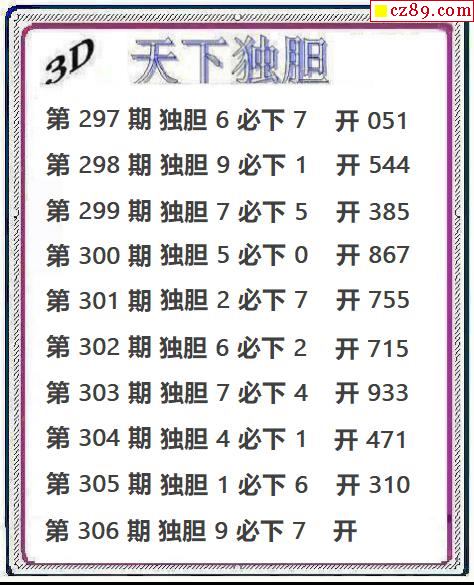天下獨膽2025306期3d圖謎