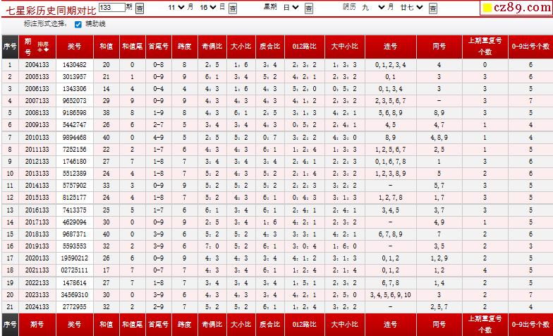 133期七星彩歷史同期對比圖