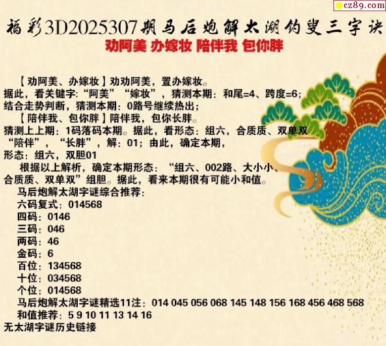 馬后炮解25年307期3d太湖釣叟之 包你胖