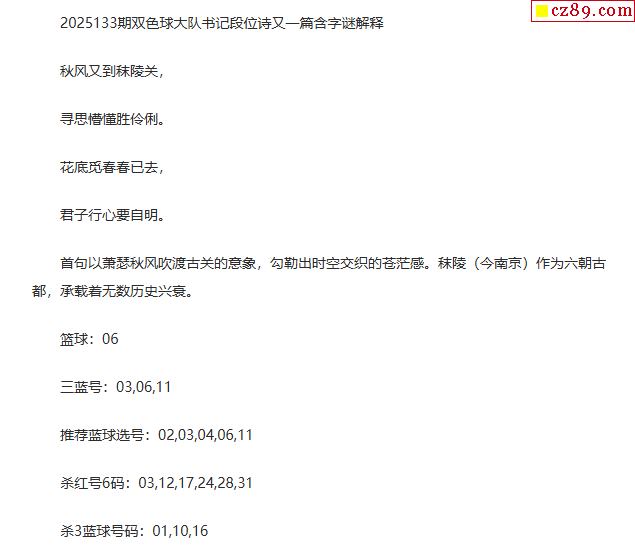 25年福彩雙色球133期 大隊書記段位詩另一篇