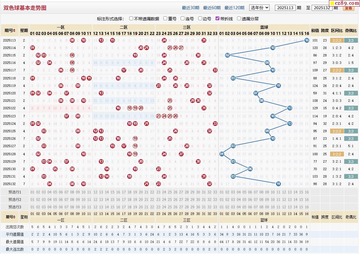 133期福彩雙色球近期走勢圖分析