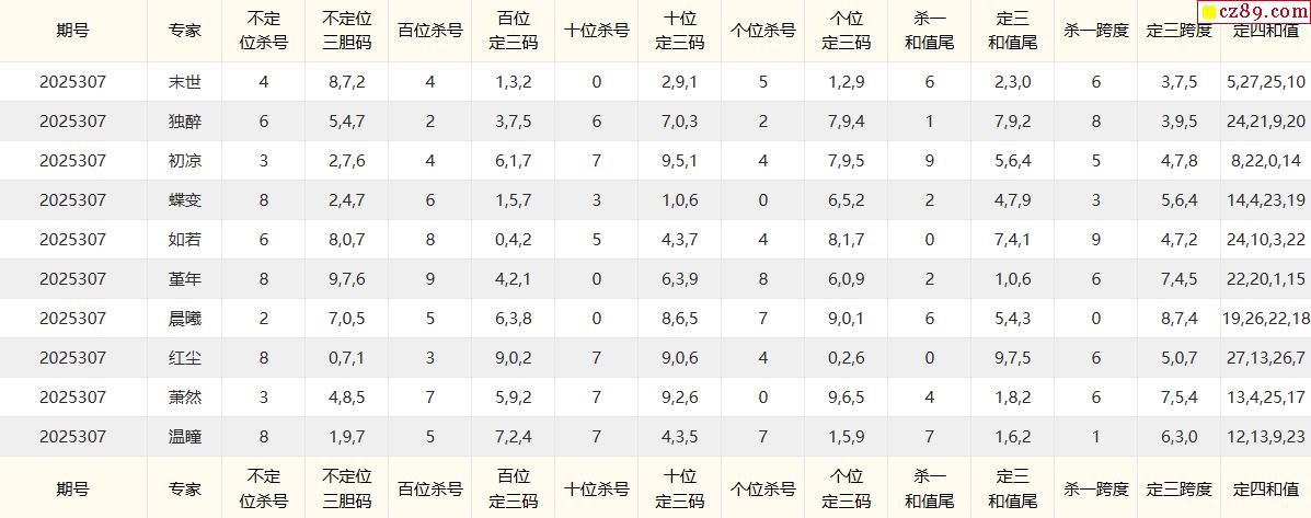 25年307期彩寶貝專家福彩3D殺號定碼圖表