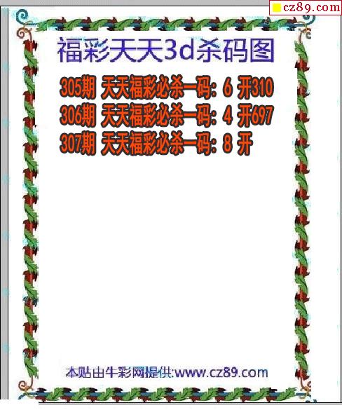 福彩天天殺碼2025307期3d圖謎(原創)