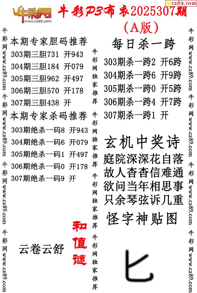 牛彩P3布衣25年307期AB版圖謎(精華版)