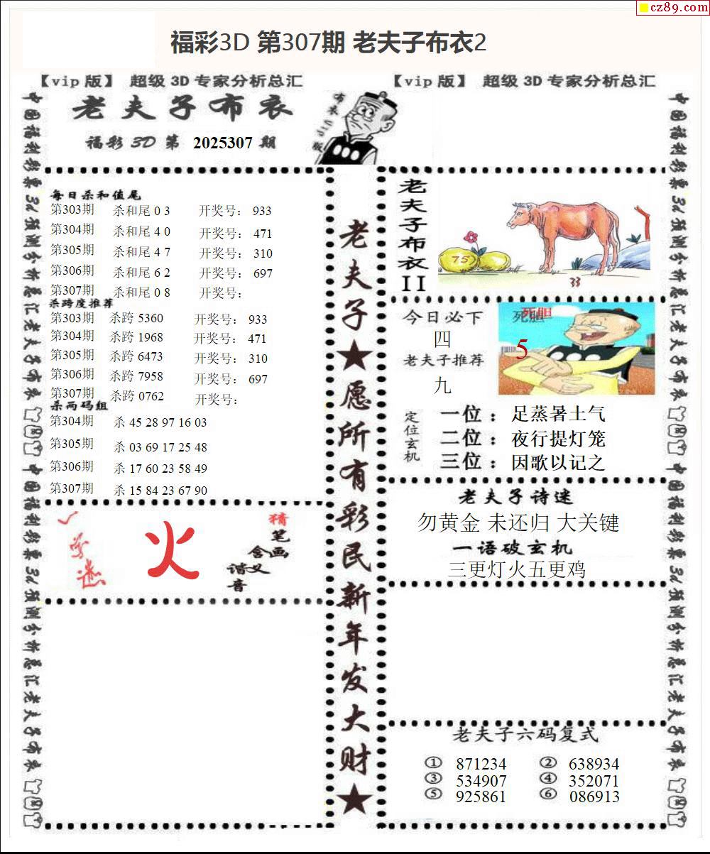 老夫子布衣2025307期3d圖謎
