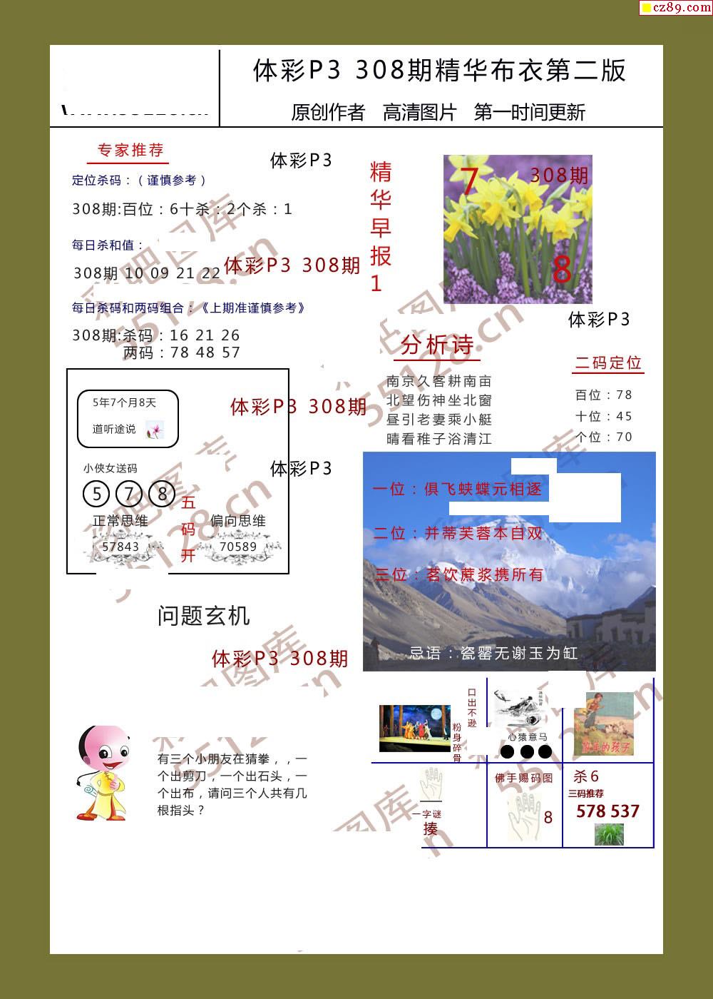 精華布衣彩報308期體彩p3圖謎