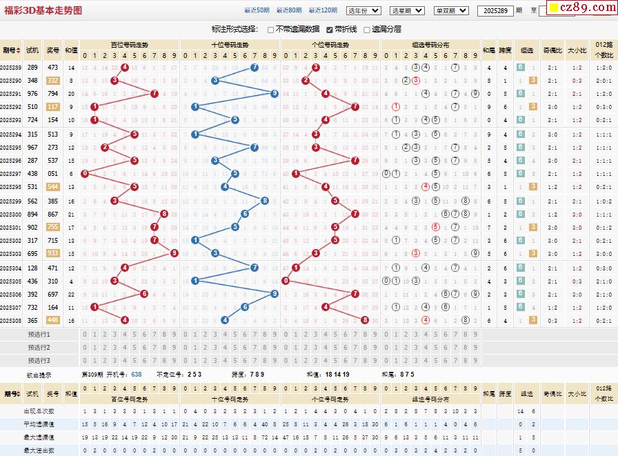 309期福彩3D開獎號碼走勢圖分析