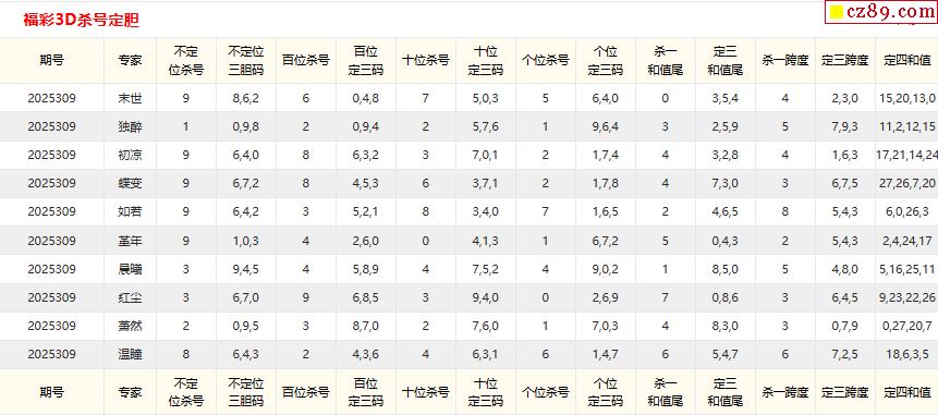 25年309期彩寶貝專家福彩3D殺號定碼圖表