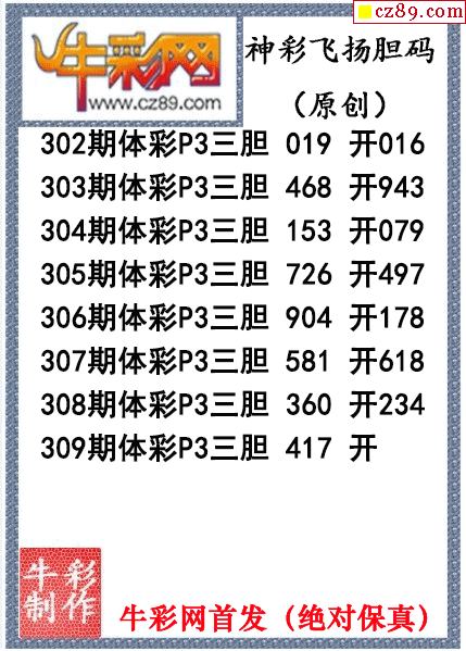 神彩飛揚三膽309期體彩P3圖謎(原創)