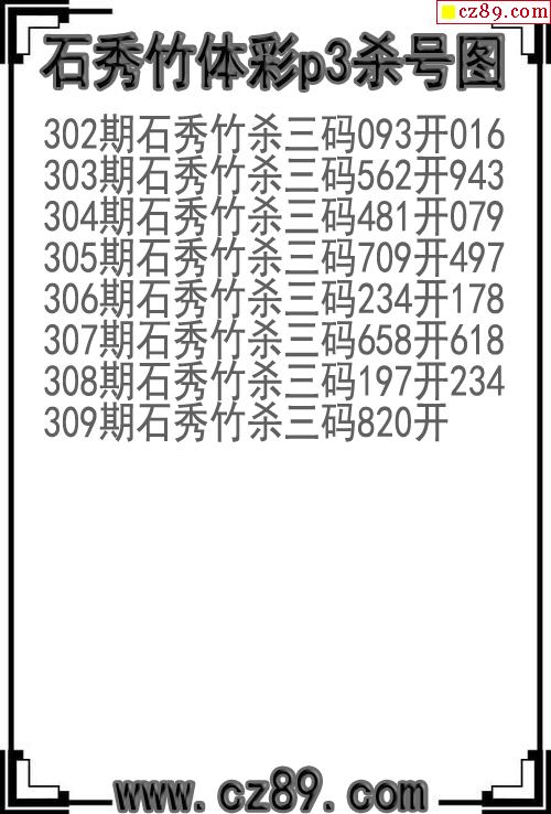 25年309期石秀竹體彩p3殺號圖
