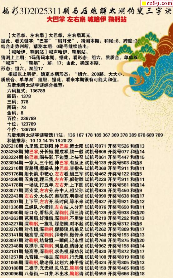 馬后炮解25年311期3d太湖釣叟之 大巴掌