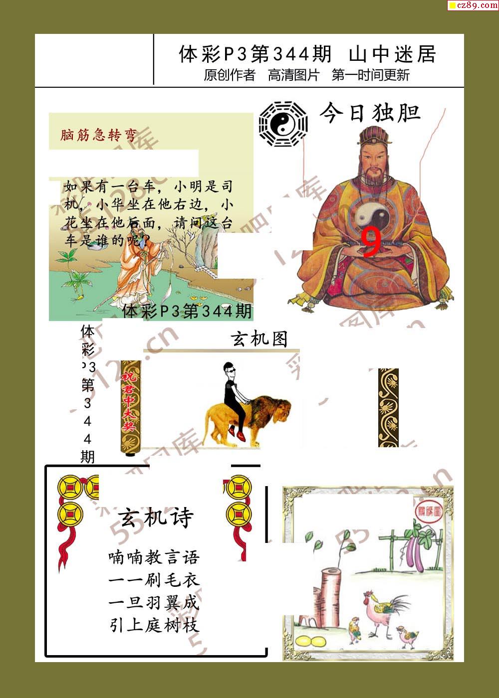 山中迷居344期體彩p3圖謎