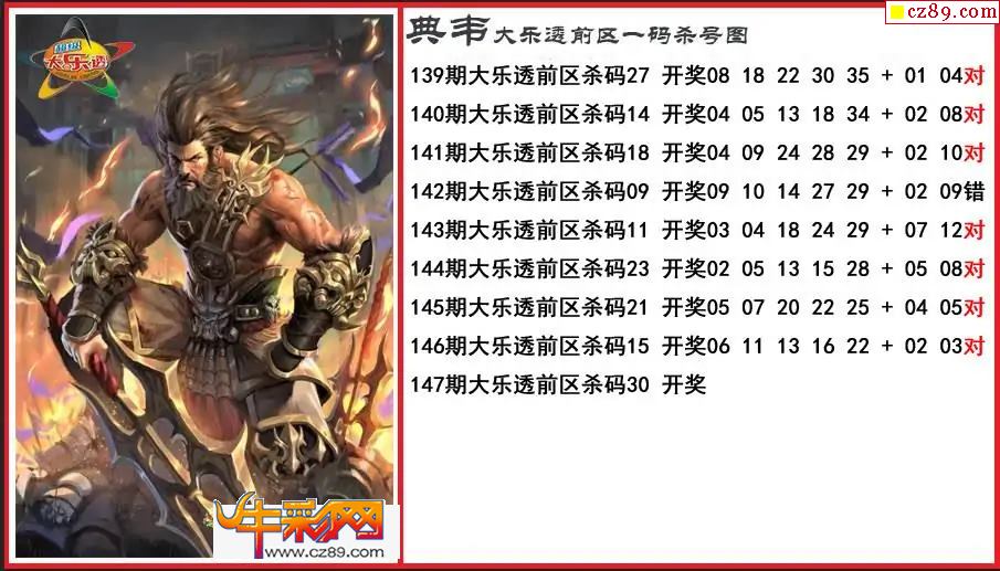 大樂透147期典韋前區一碼殺號圖