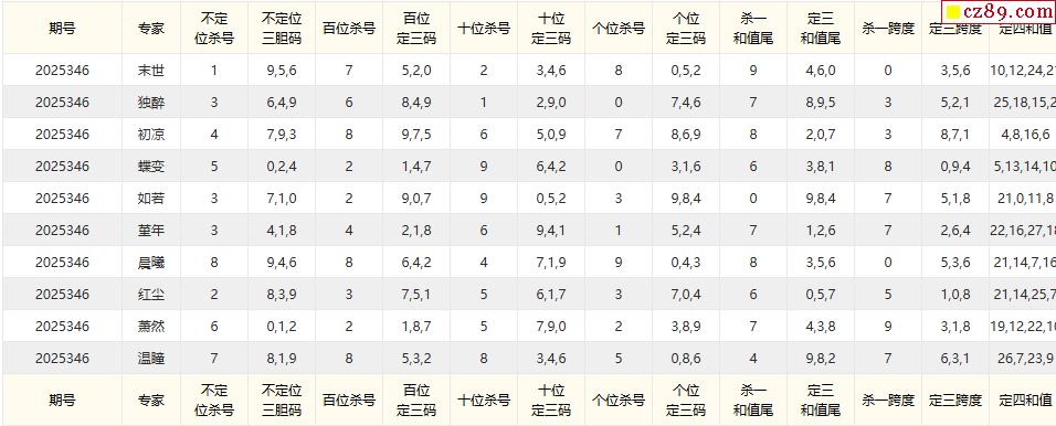 25年346期彩寶貝專家福彩3D殺號定碼圖表