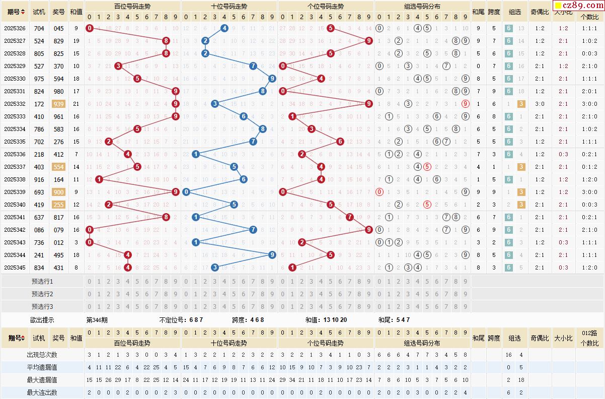 346期體彩排列3近期歷史號碼圖表